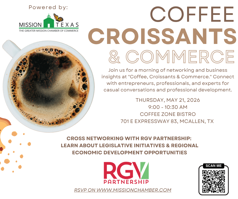 Start your day with meaningful connections and valuable insights at Coffee, Croissants & Commerce, hosted in collaboration with the RGV Partnership. This engaging morning event brings together local entrepreneurs, professionals, and business leaders for a relaxed yet impactful networking experience.